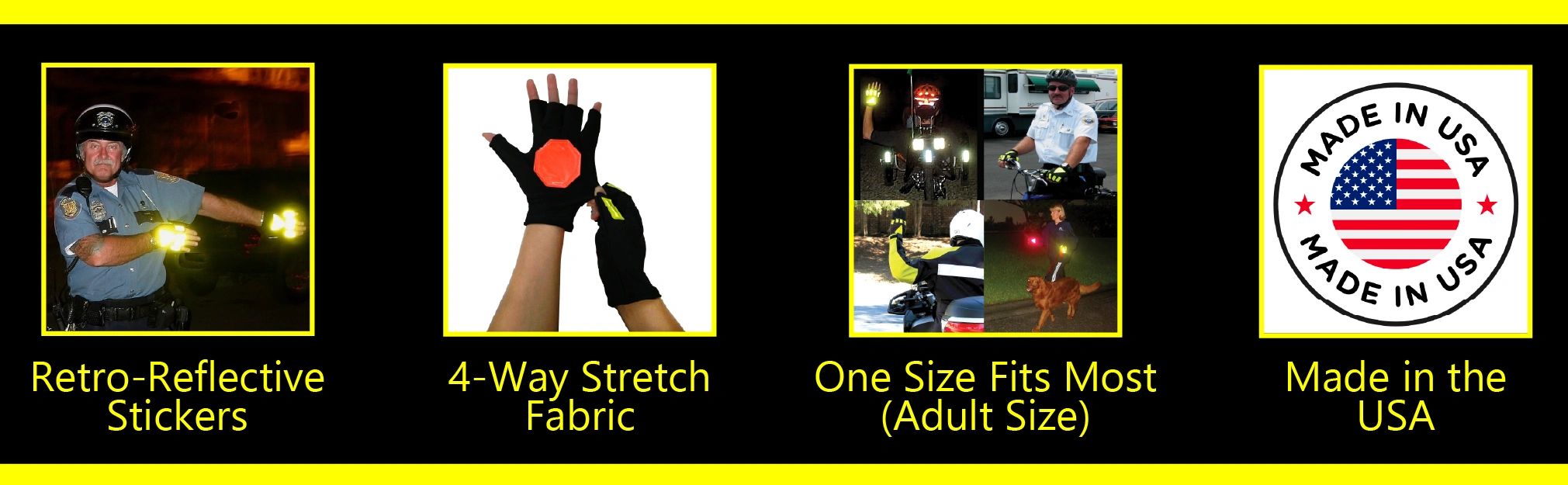 My name is Jeff Nelson, Assistant State Captain, Patriot Guard Riders of Northern CA in Redding and former California Hwy Patrol officer. Several years ago I bought a pair of the stop sign GloGlovs. They really work and all our escort riders are required to wear them for obvious safety reasons. Road Guards wear them riding across the USA -